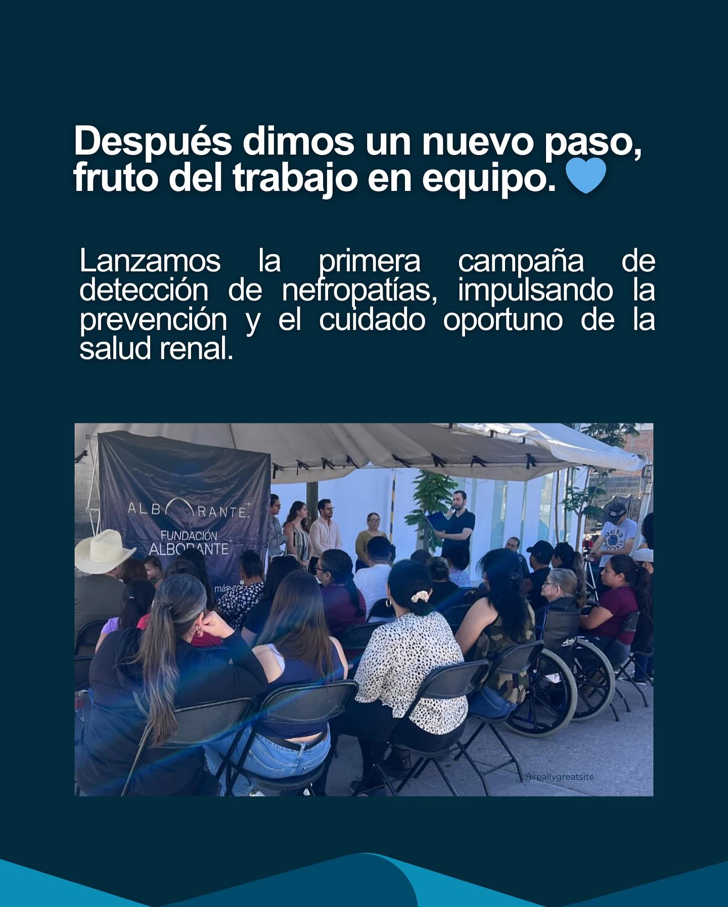 Por eso iniciamos campañas gratuitas de detección como diabetes y nefropatías, dando vida a la Fundación Alborante.????????